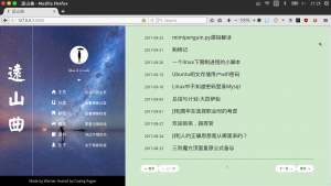 对博客再次进行改版。减小侧边栏宽度,替换侧边栏背景为绿色主题图片,与背景色呼应。修复前端路由、评论加载等几处bug。现在博客如下图所示: